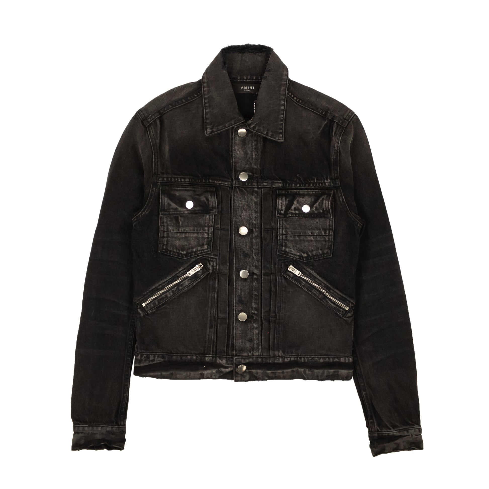 Aged Black Cotton Core Double Slanted Trucker Jacket