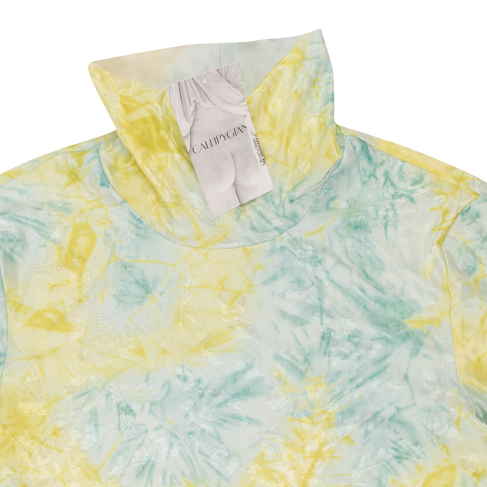 TEXTURED TIE DYE YELLOW BLUE TURTLENECK