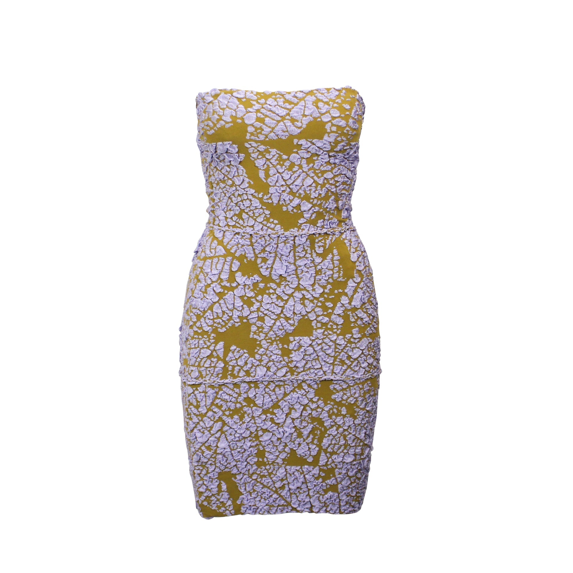 LILAC OCHRE BANDAGE LEAF SKELETON TUBE DRESS