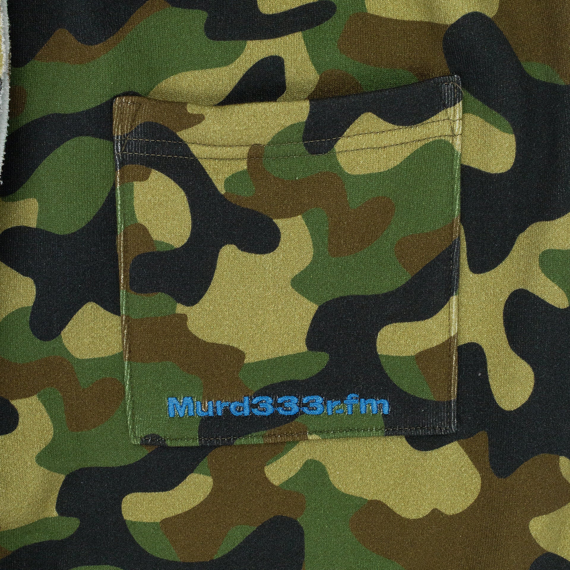 GREEDY UNIT x MURD333R.FM GREEN CAMO SWEATSHORTS