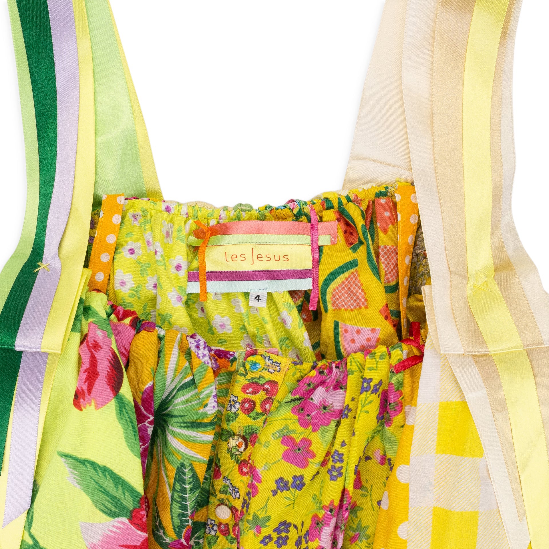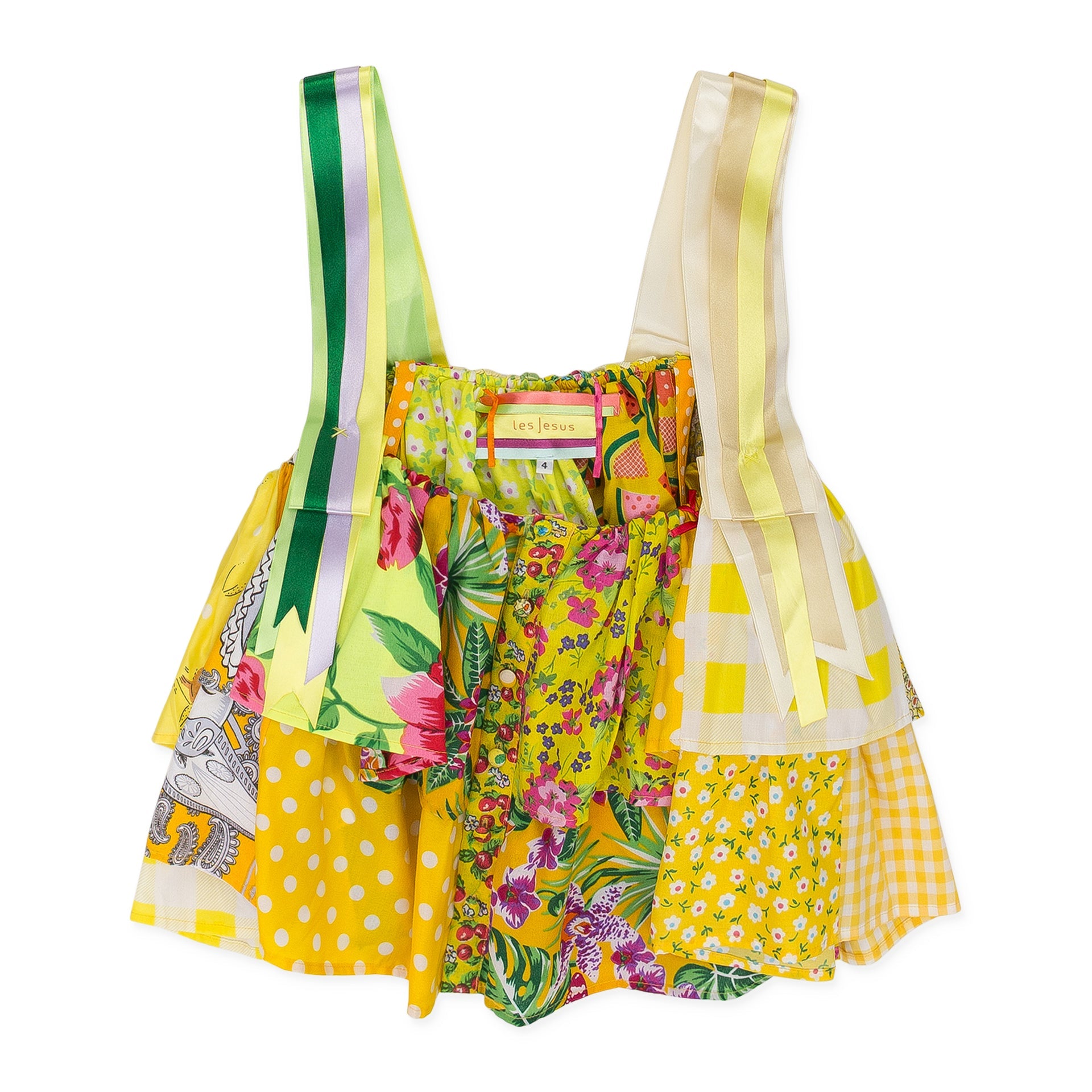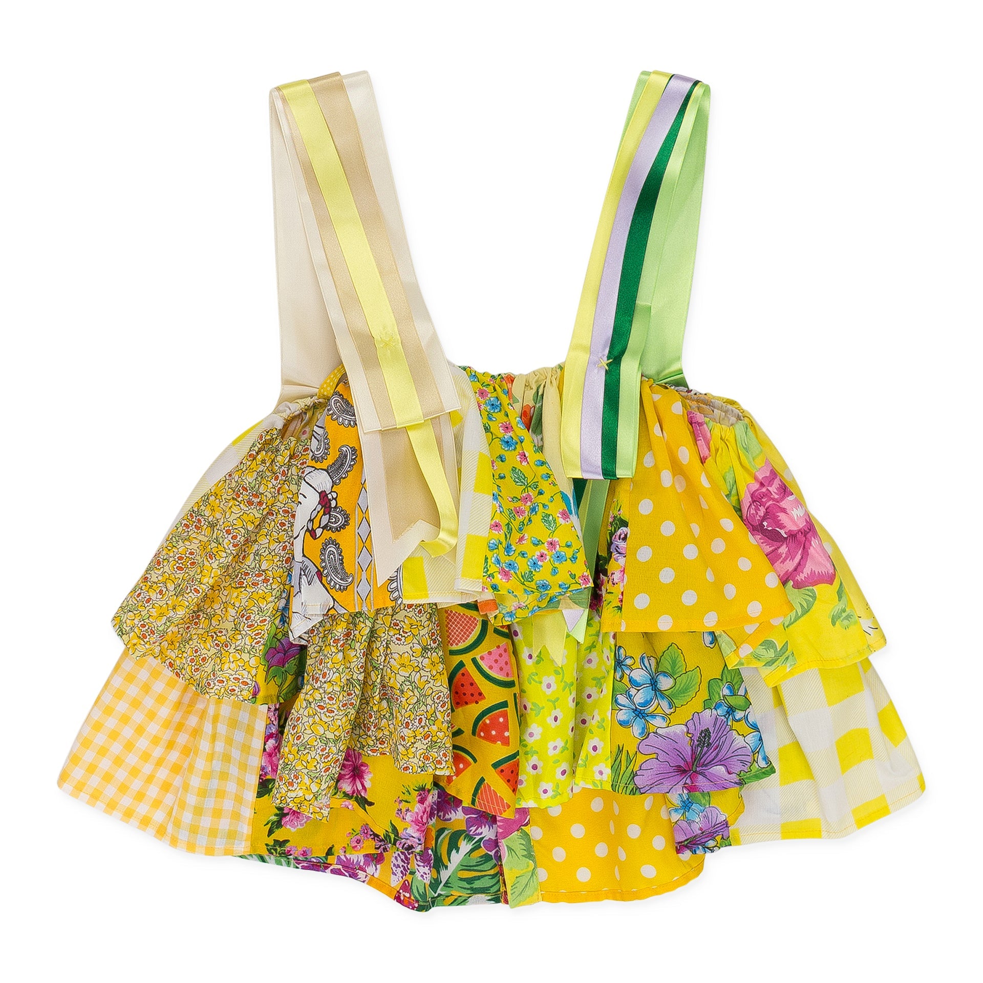YELLOW RUFFLED PATCHWORK RIBBON BLOUSE