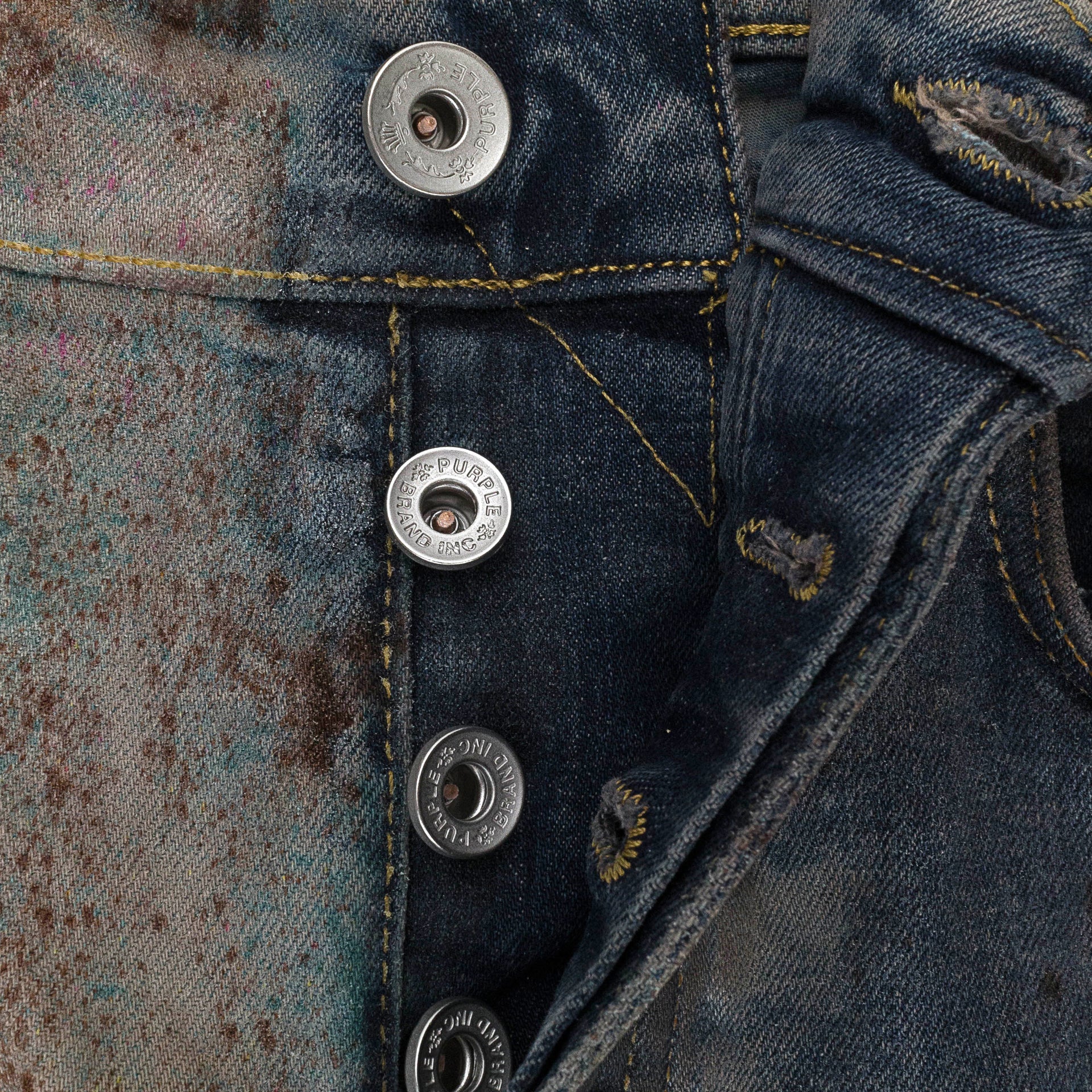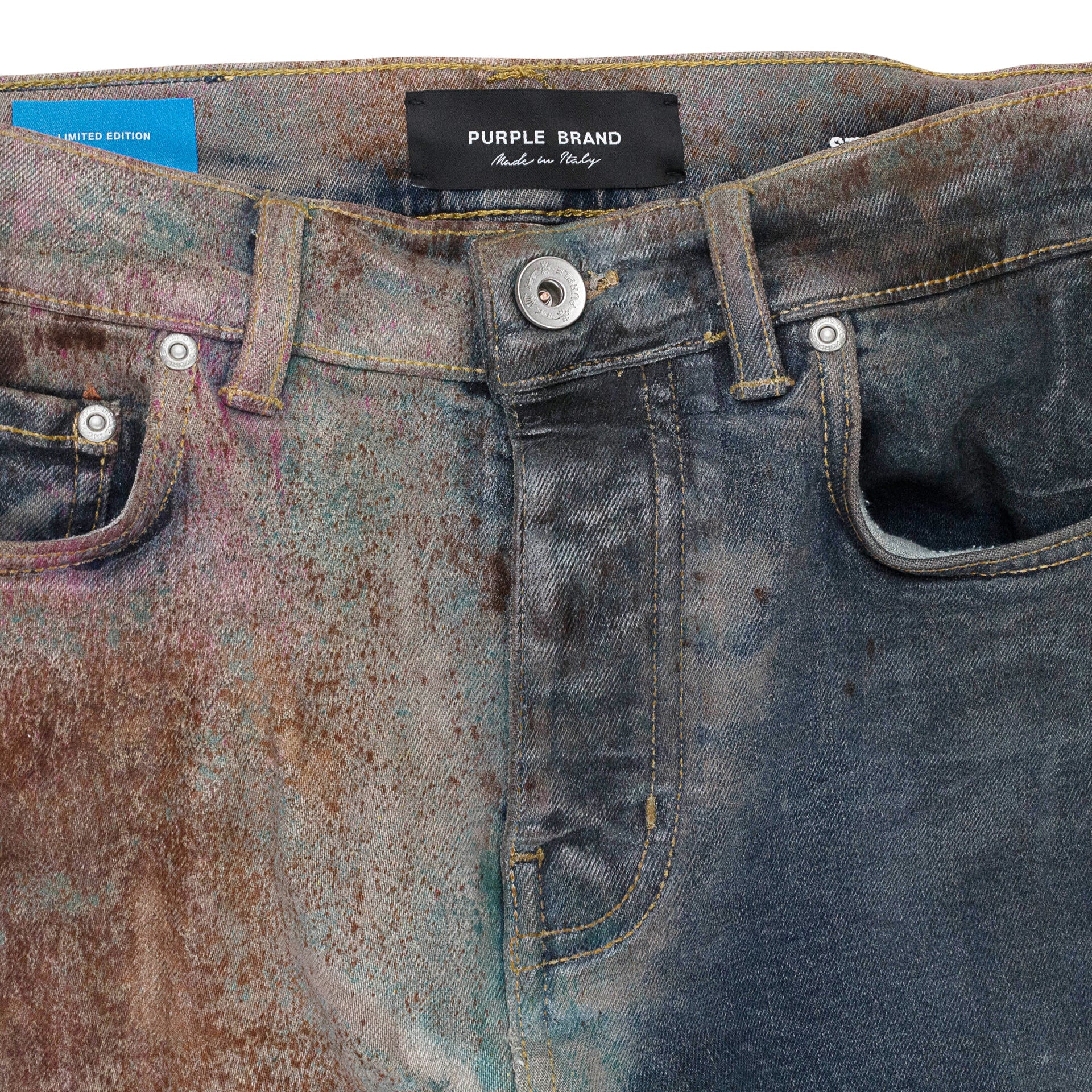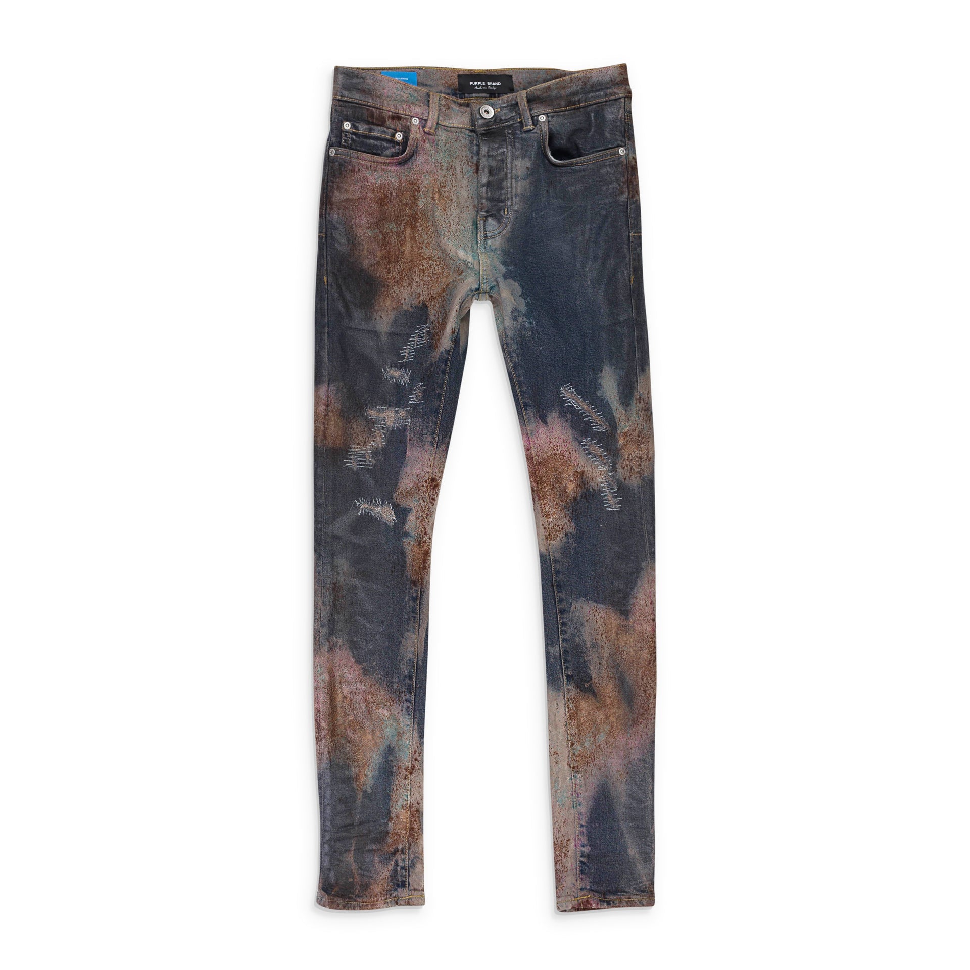 MULTICOLOR SPRAY OVER BLEACHED Indigo SKINNY JEANS