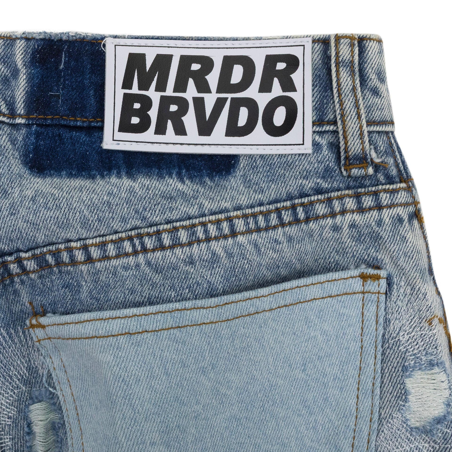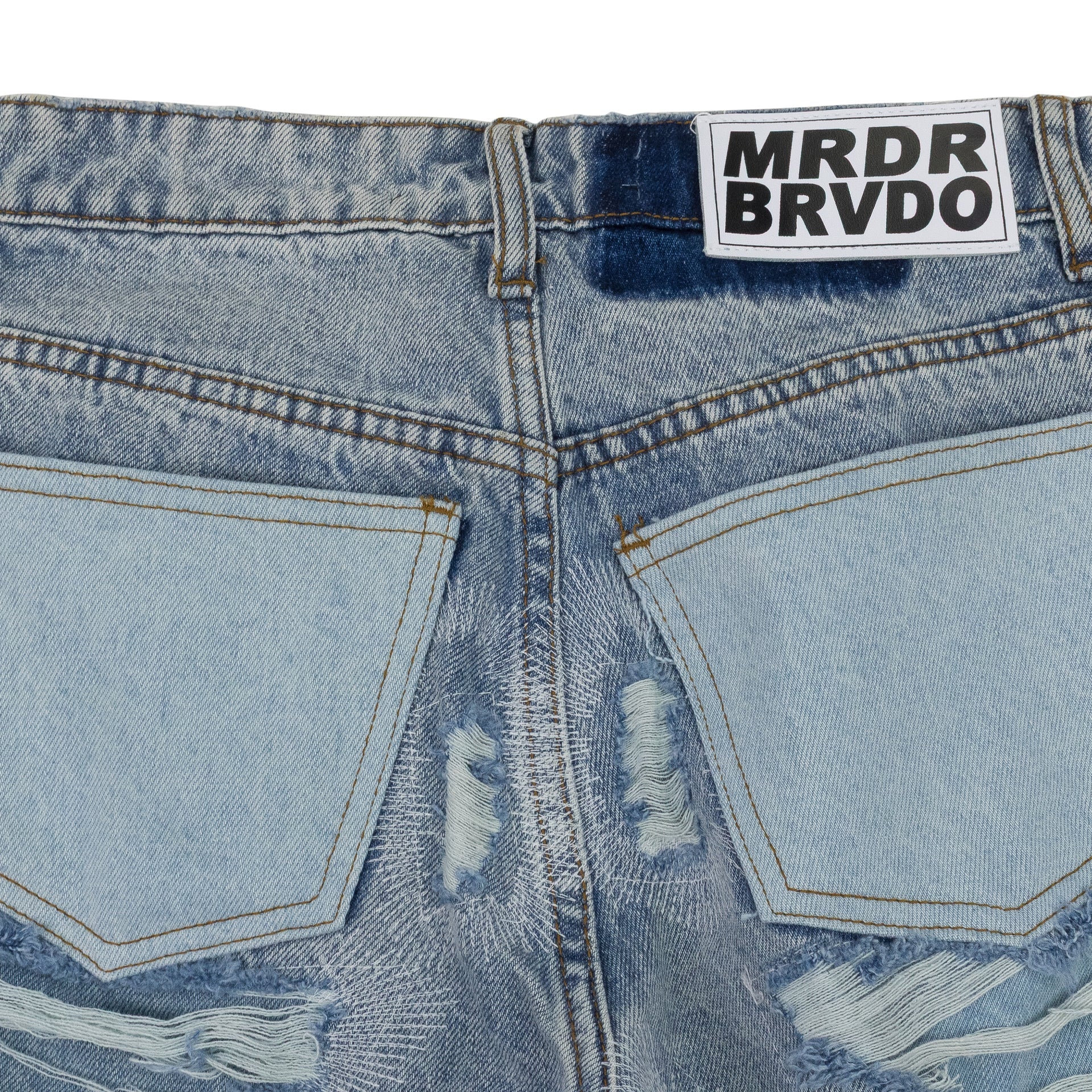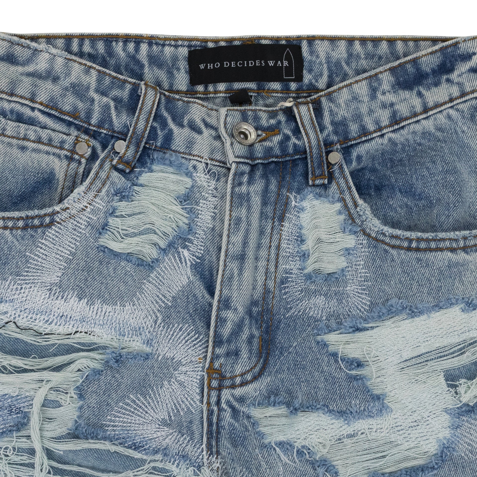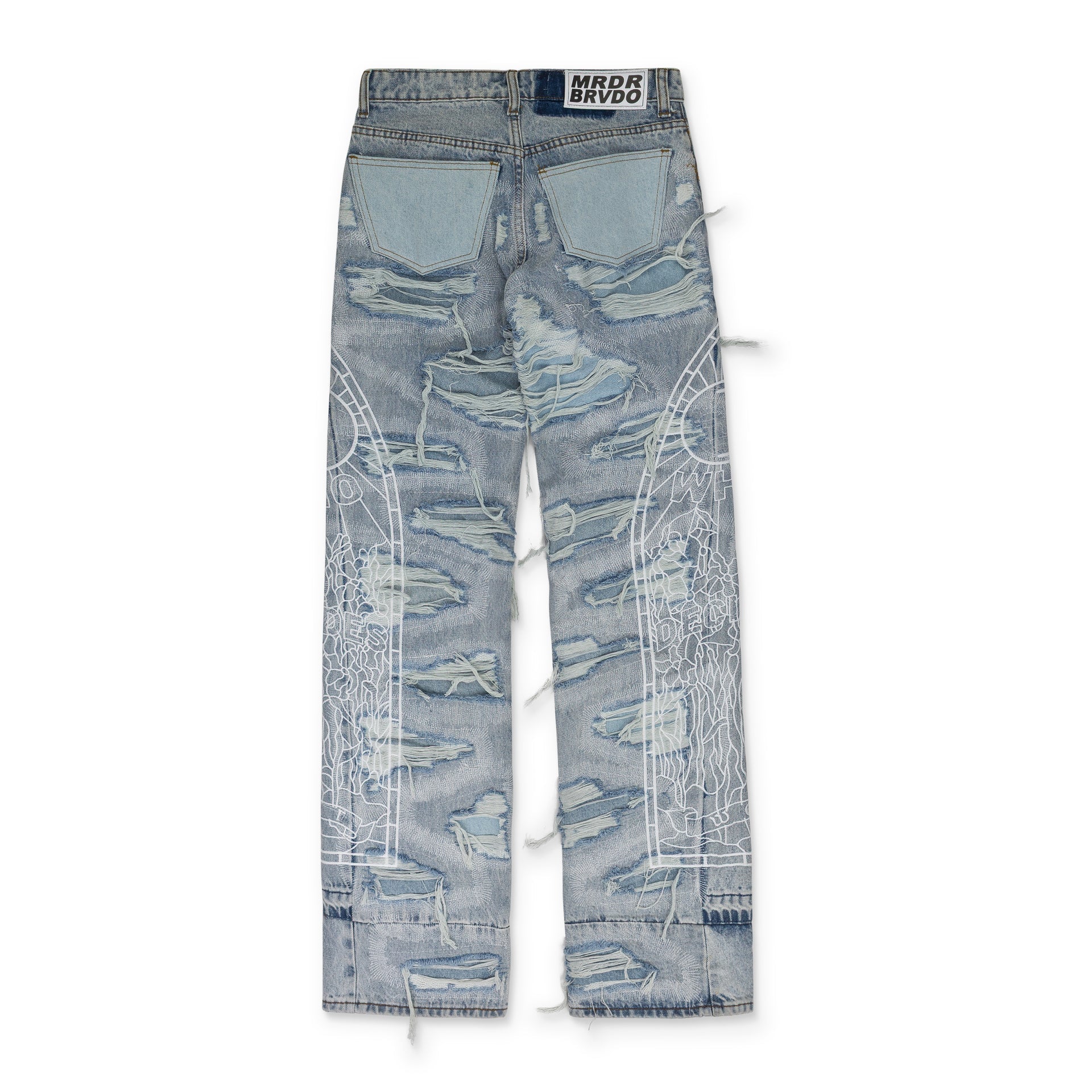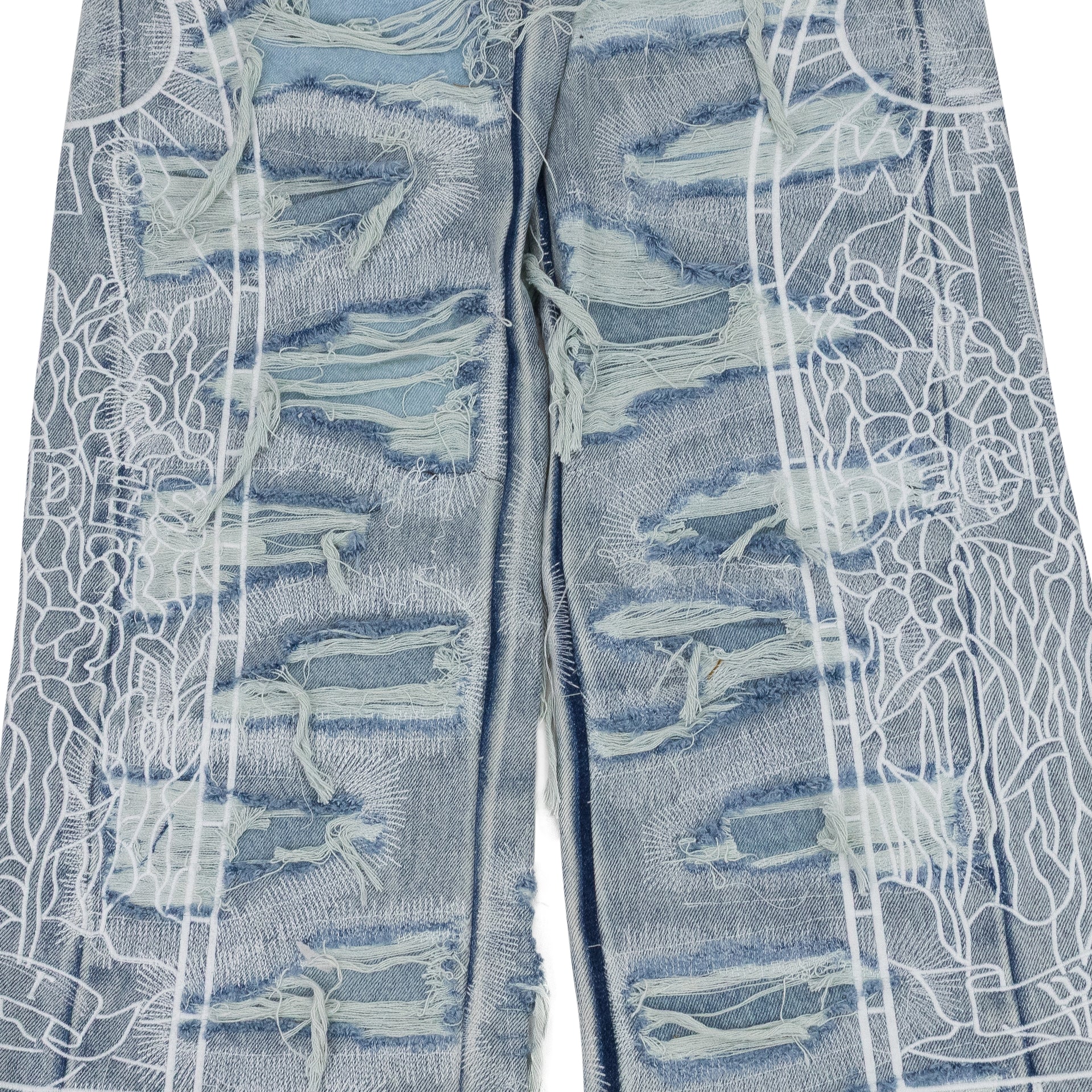 BLUE DISTRESSED STRAIGHT-FIT JEANS