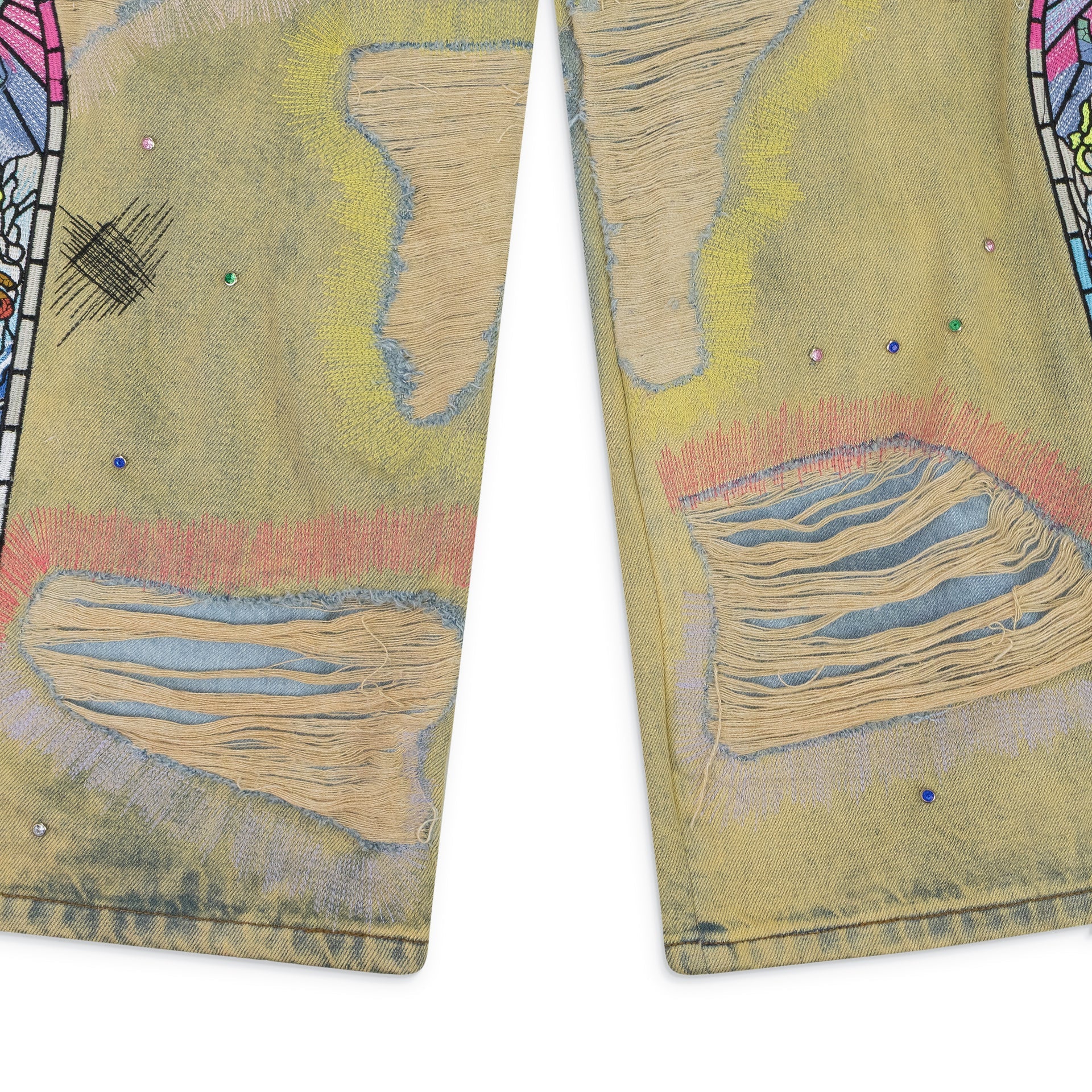 MULTI SIDE-EMBROIDERY WIDE-LEG JEANS