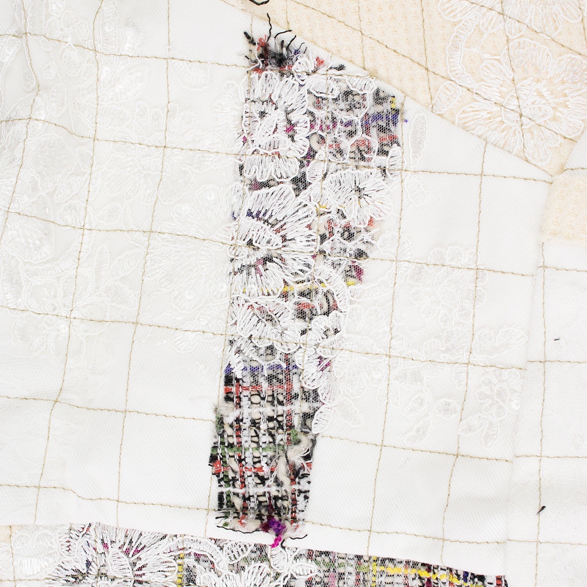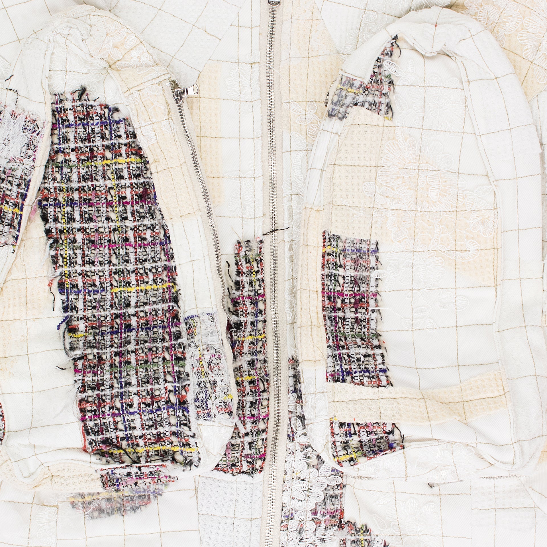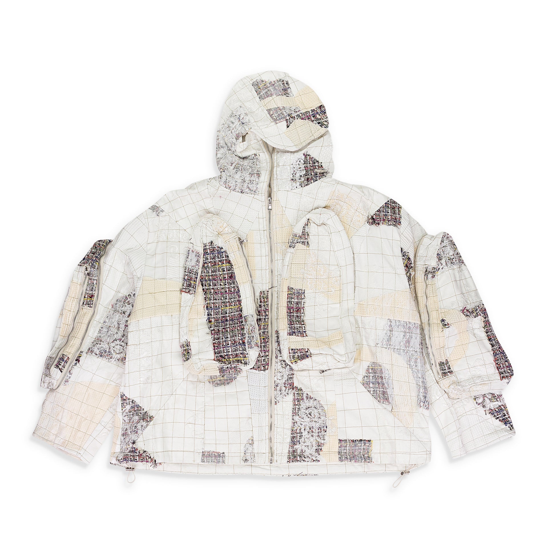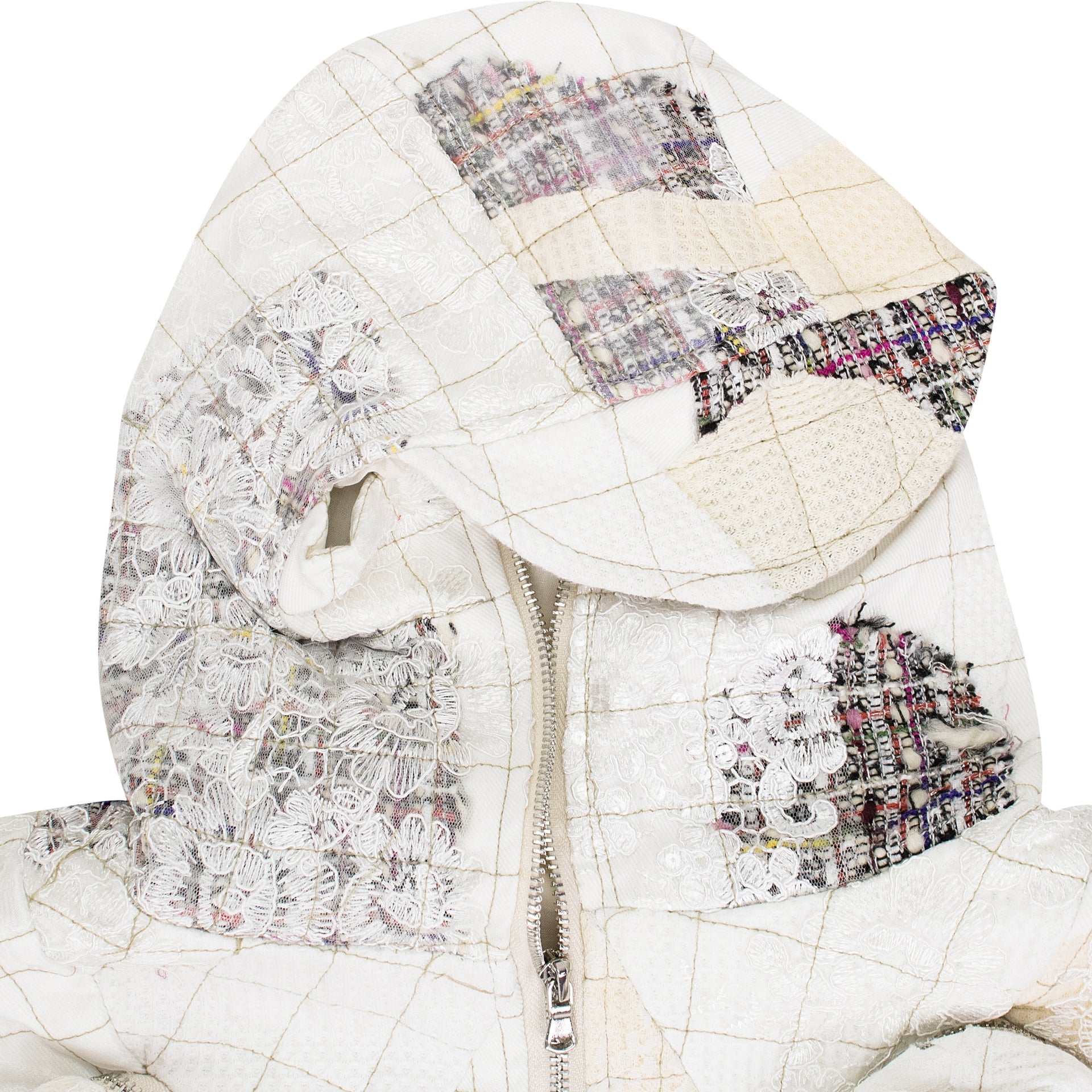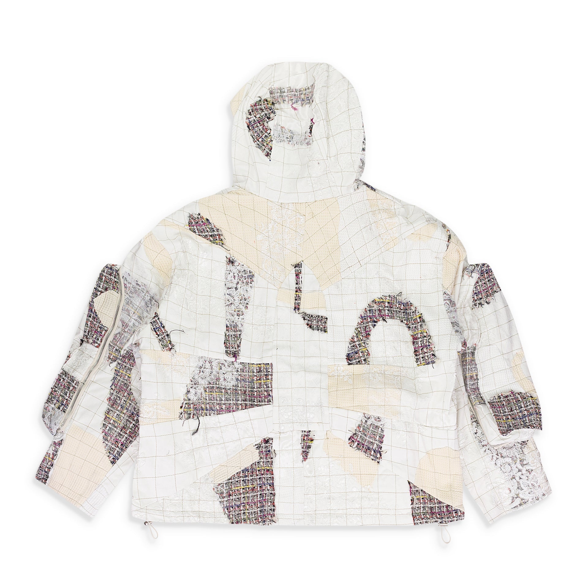 WHITE TWEED PATCHWORK WINDOW HOODIE